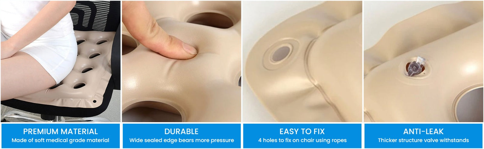 • Multi-Zone Pressure Relief: Targets hips, thighs, and tailbone for balanced support