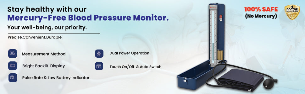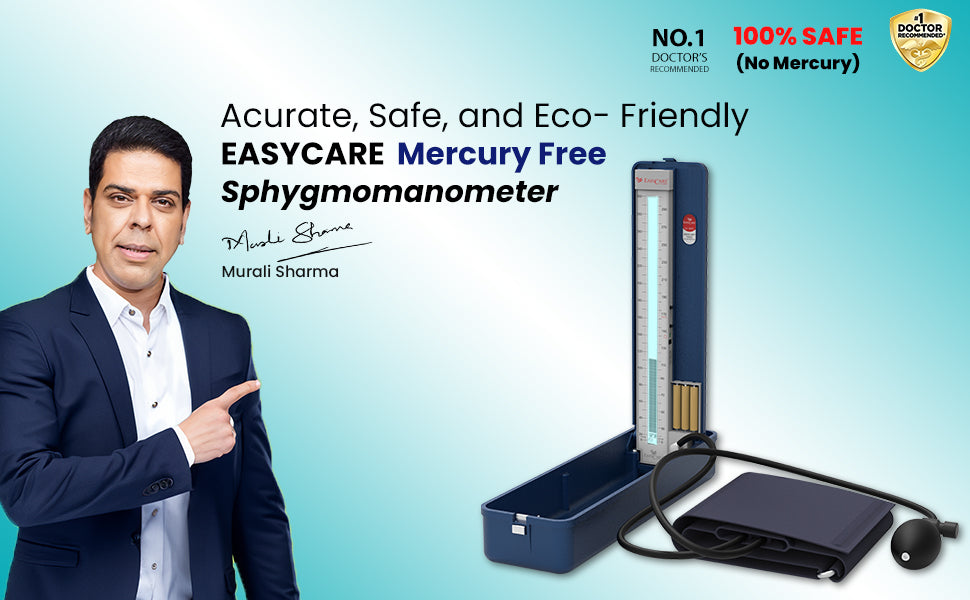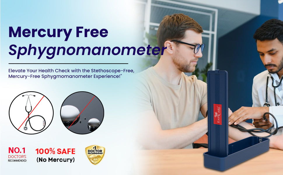 EASYCARE Mercury Free Sphygmomanometer is a best alternative to mercury type sphygmomanometer. Mercury has been replaced by an LED Light as it can be toxic & hazardous to health. It functions similar as mercury bp instrument & provides accurate measurements.