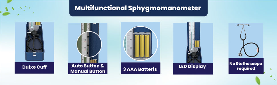 2 Measurement Methods: You can operate this sphygmomanometer in dual mode, either manually with a stethoscope or automatically without it.