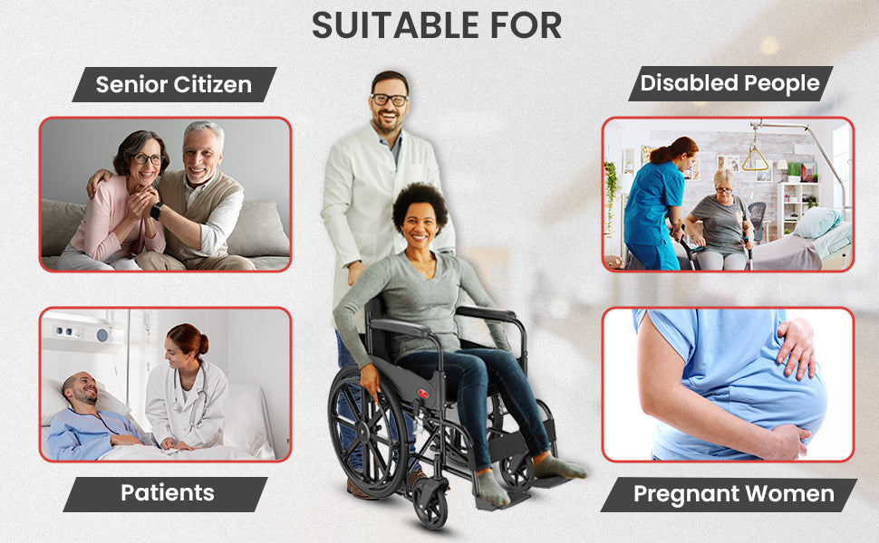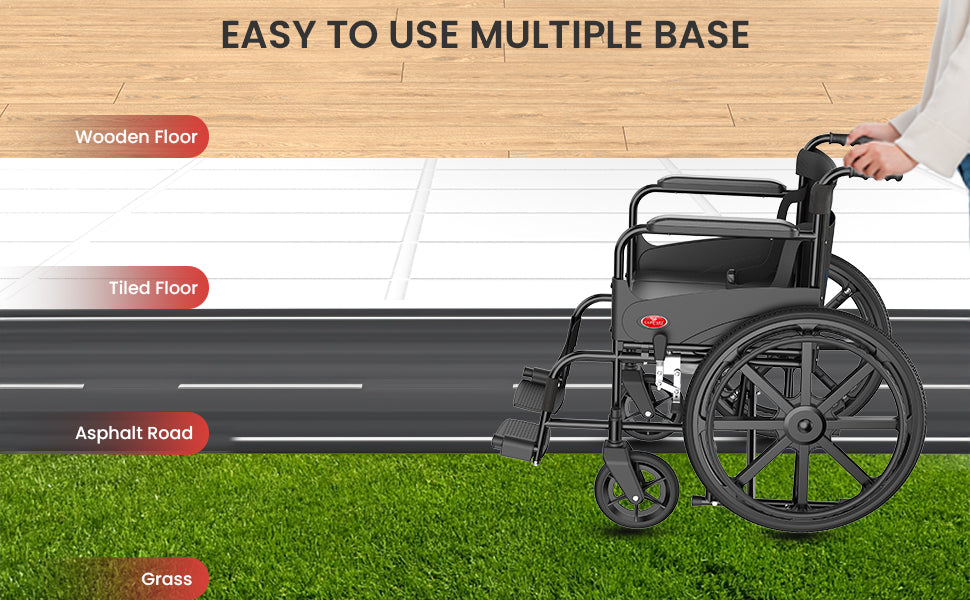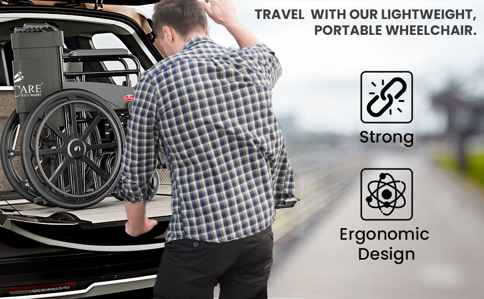 Its foldable frame and swing-away footrests make the EC709 wheelchair easy to store and transport. Lightweight yet sturdy, it's a great option for wheelchair travel, home use, and office environments, and fits effortlessly into car trunks.