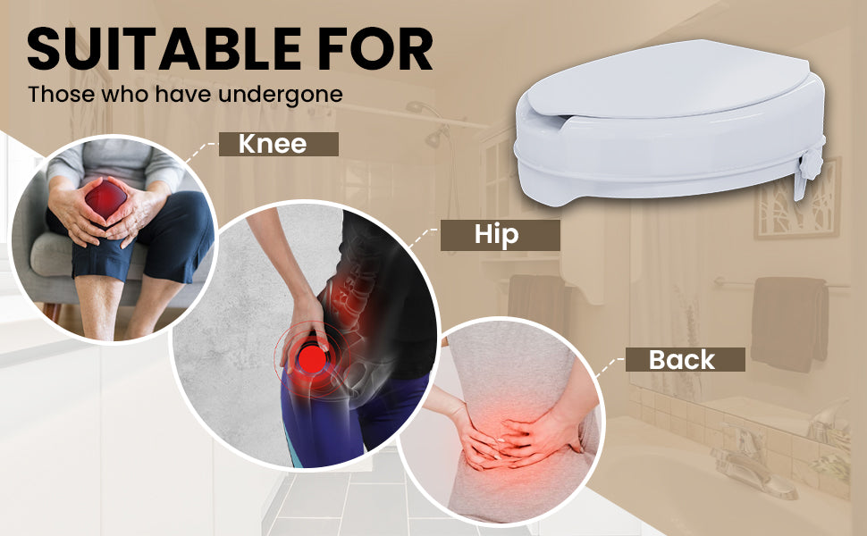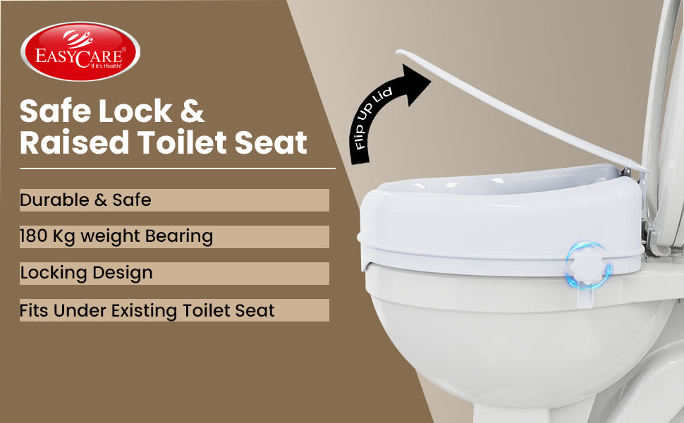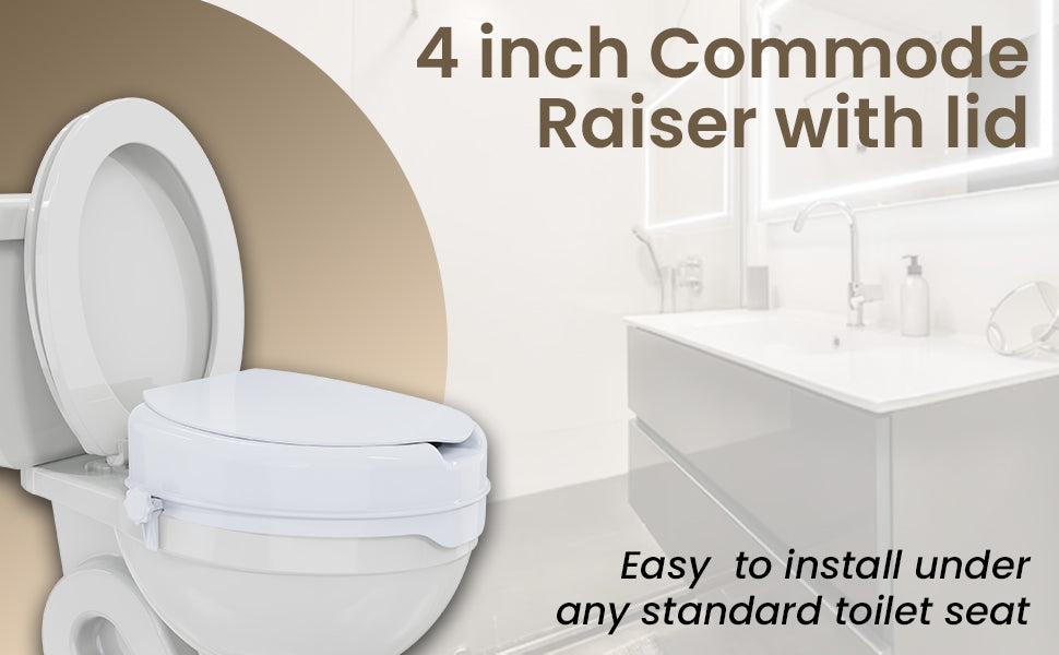- Adds extra 4 inches: The EASYCARE Commode Raiser elevates the toilet seat by 4 inches to assist senior citizens, handicap, and those who has stiff joints, recovering from (hip, knee or back) surgery.
