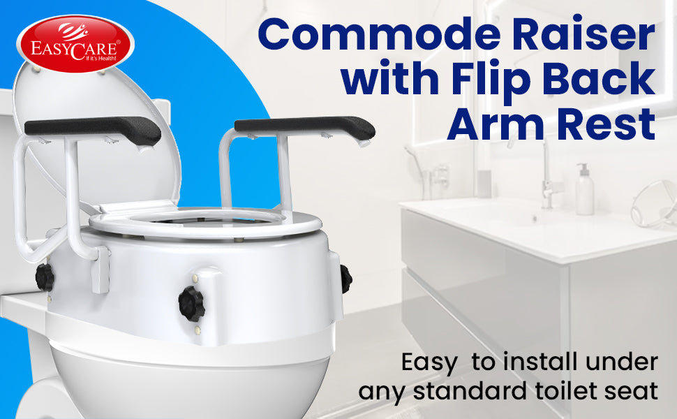 EASYCARE Toilet Seat with Arms – Elevated Commode Raiser for Elongated Toilets