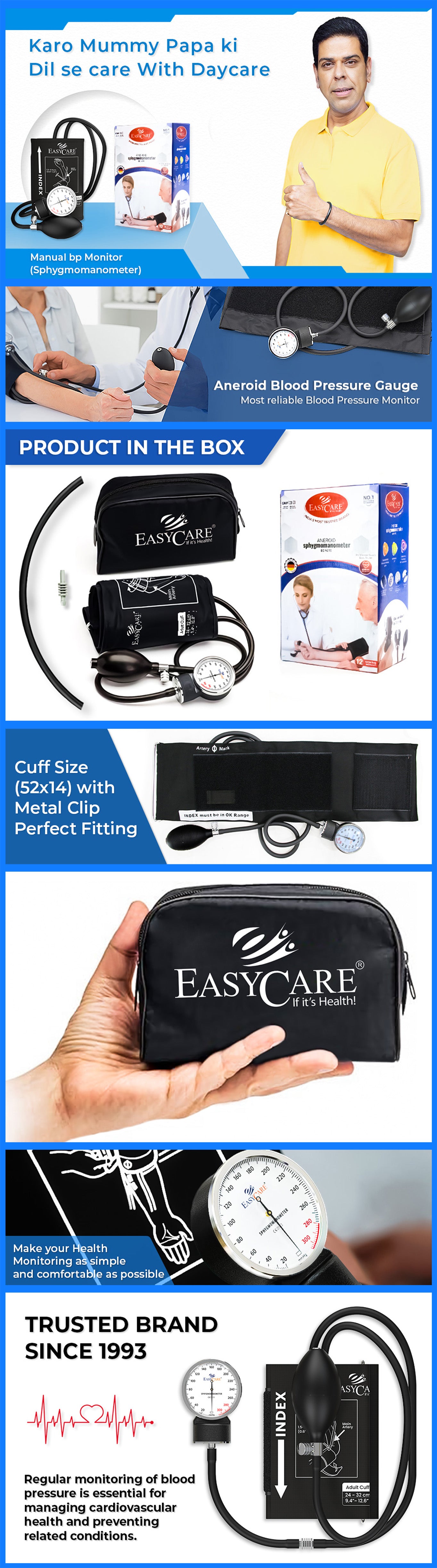 This manual sphygmomanometer offers dependable, professional-grade blood pressure monitoring. Whether you're a healthcare professional, student, or health-conscious individual, the EASYCARE Classic Dial BP Machine offers clinical precision, portability, and a reliable build for long-term use.