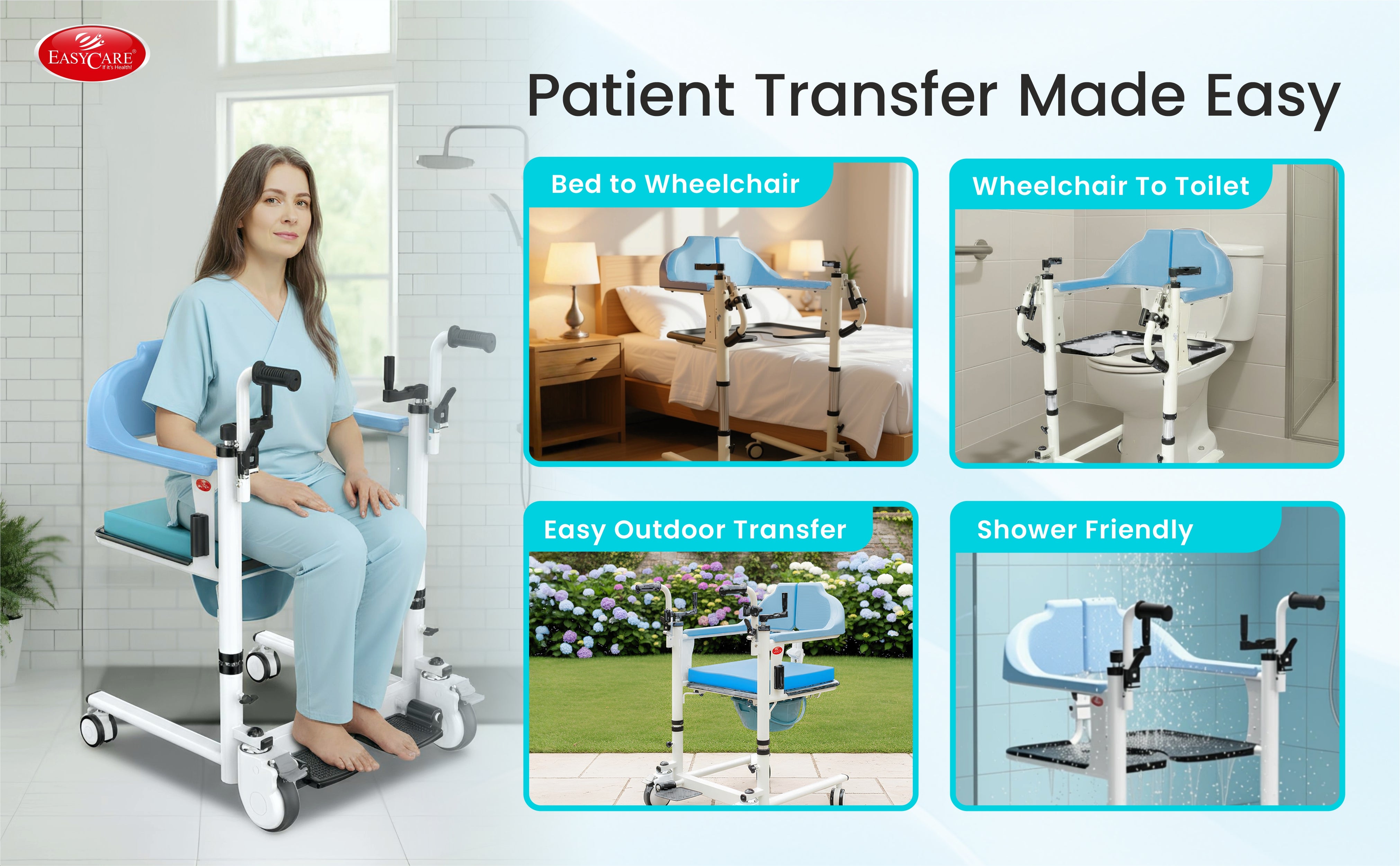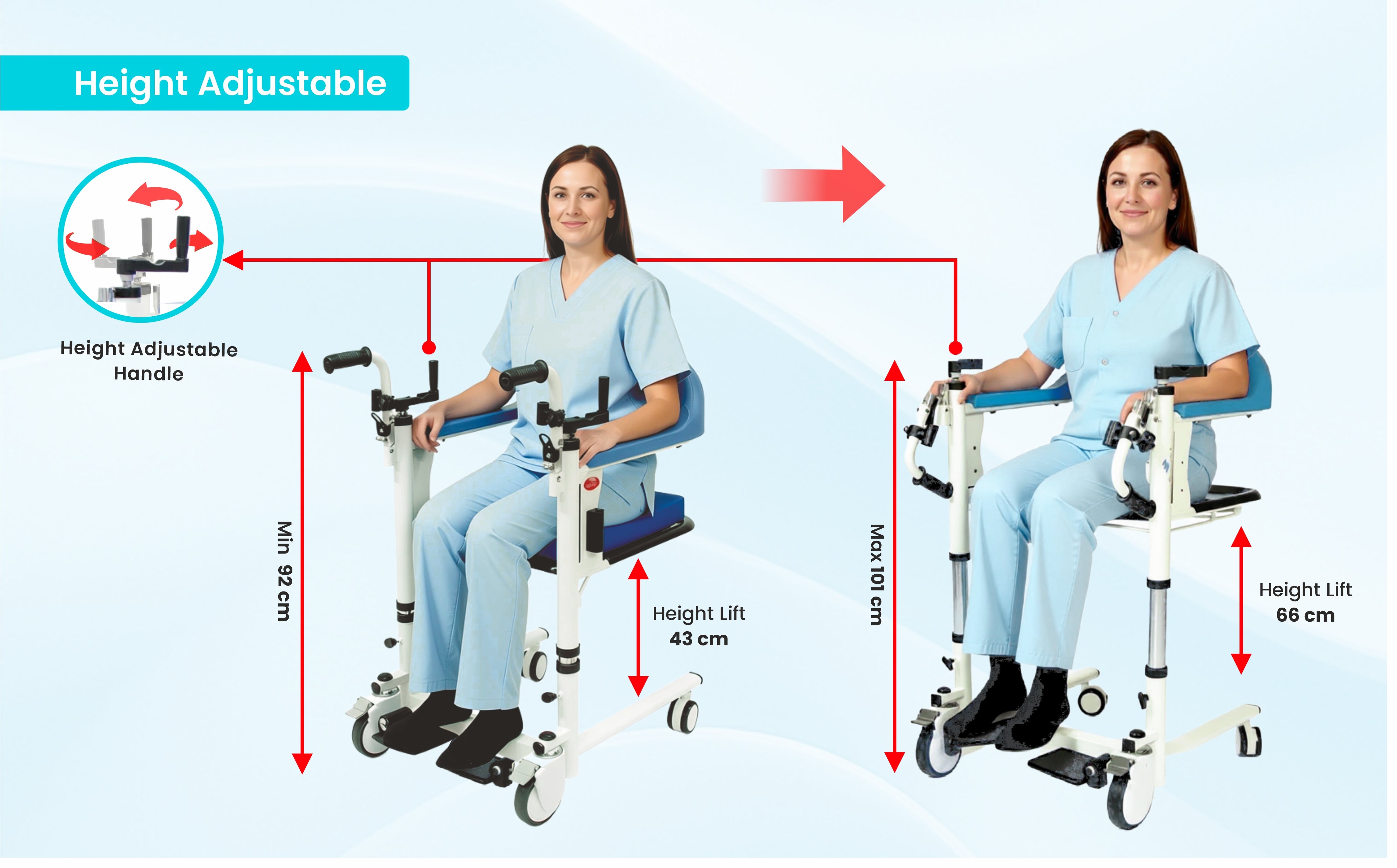 The adjustable drop-down handle is thoughtfully designed to ease the physical effort involved in caregiving. It offers a comfortable, secure grip and allows easier access for the patient, reducing strain and making each transfer smoother and more controlled.