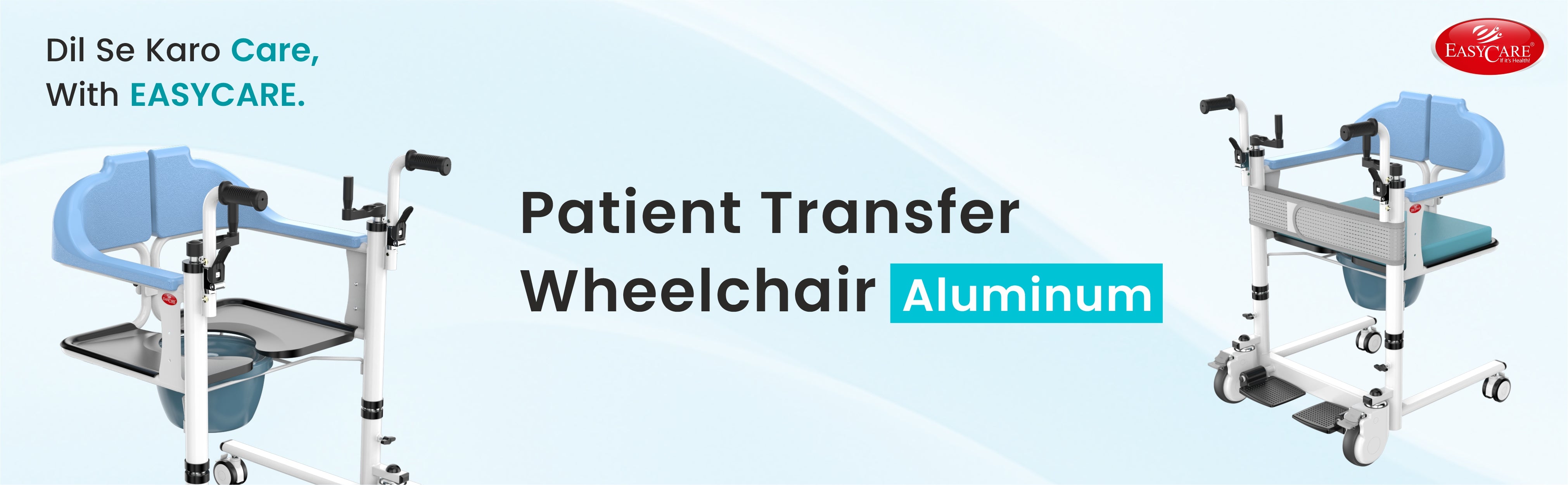 EASYCARE® Aluminium Patient Transfer Wheelchair with Adjustable Drop-Down Handle, 360° Wheels, Shower-Friendly Design, 125 kg Capacity