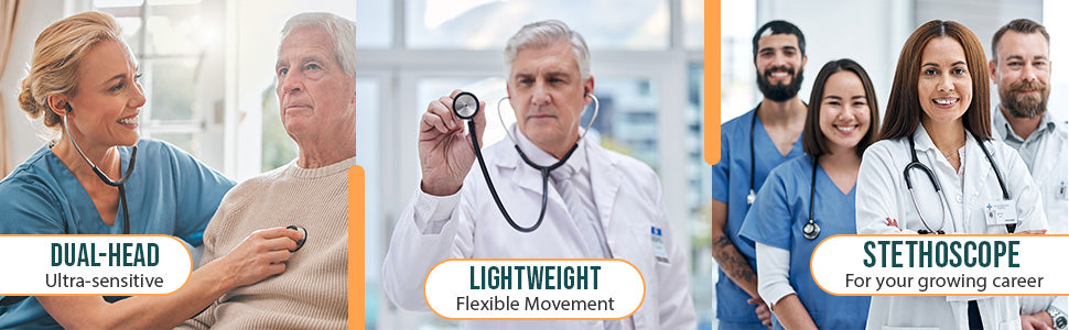 Engineered for long hours of clinical use, this stethoscope combines a lightweight frame with a steady, ergonomic fit. The flexible tubing is resistant to stains, oils, and sweat, helping it maintain a professional look even after extended wear. For patient comfort, the chestpiece features both an anti-chill and non-chill ring to prevent discomfort during examinations.