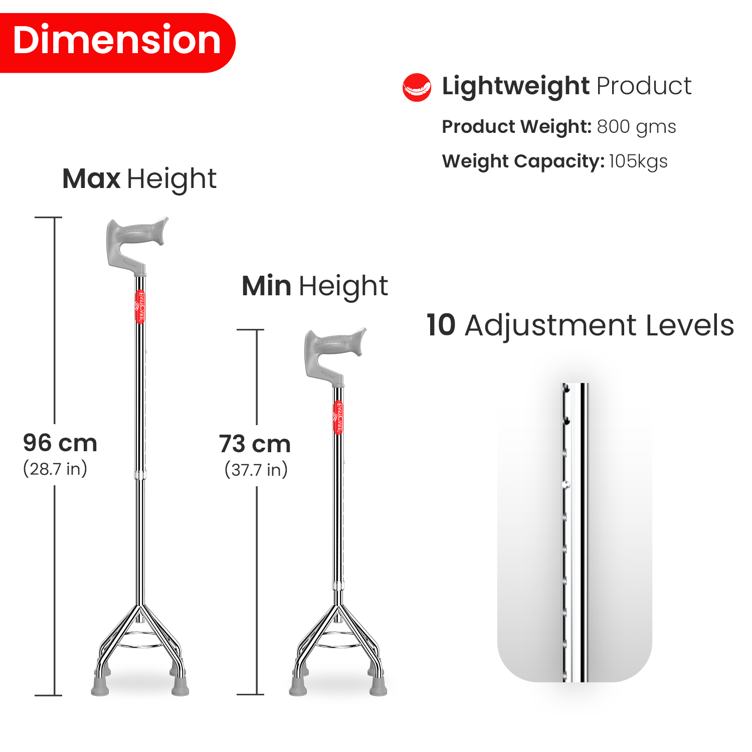 • Base Type: Slip-resistant rubber tips with high-rise quad legs