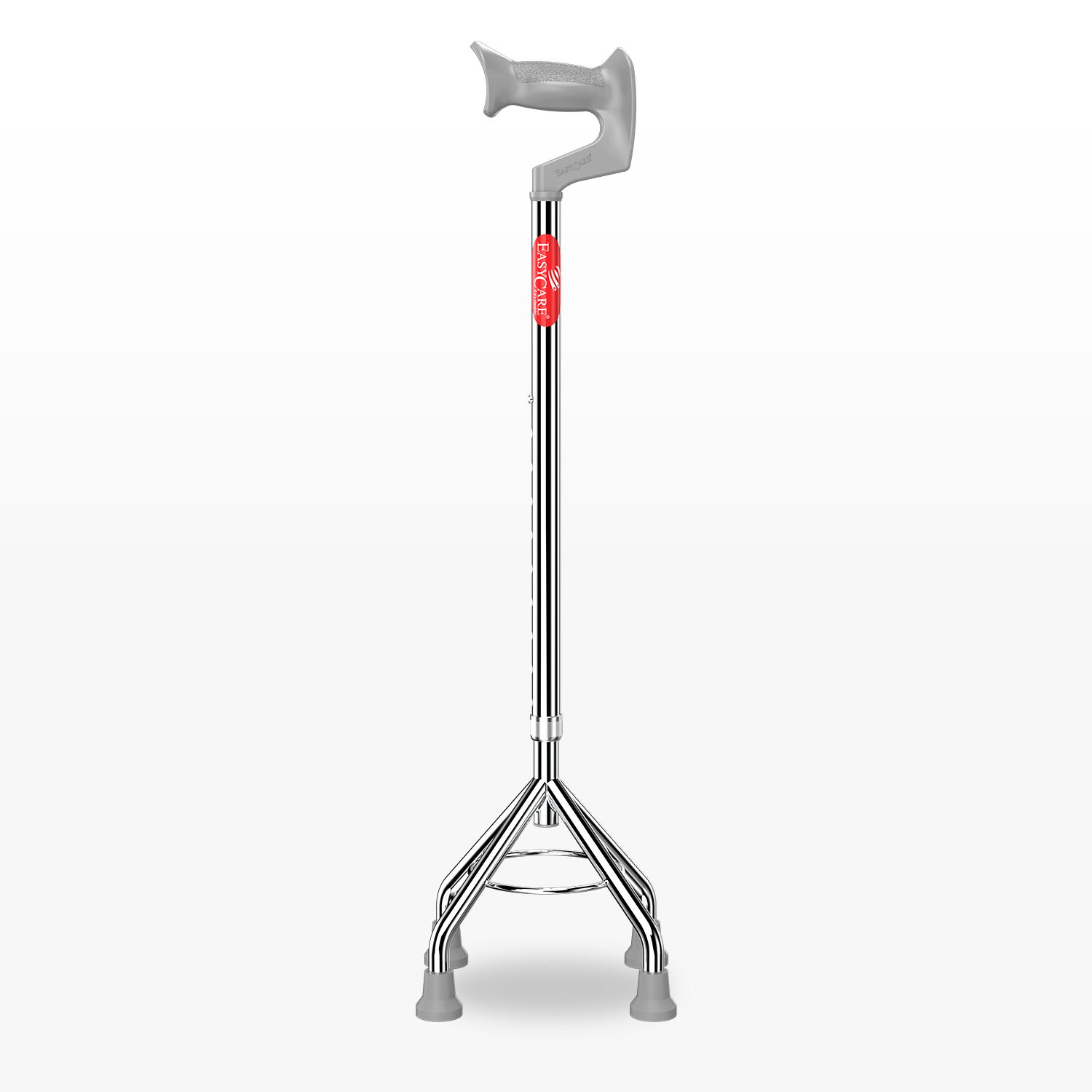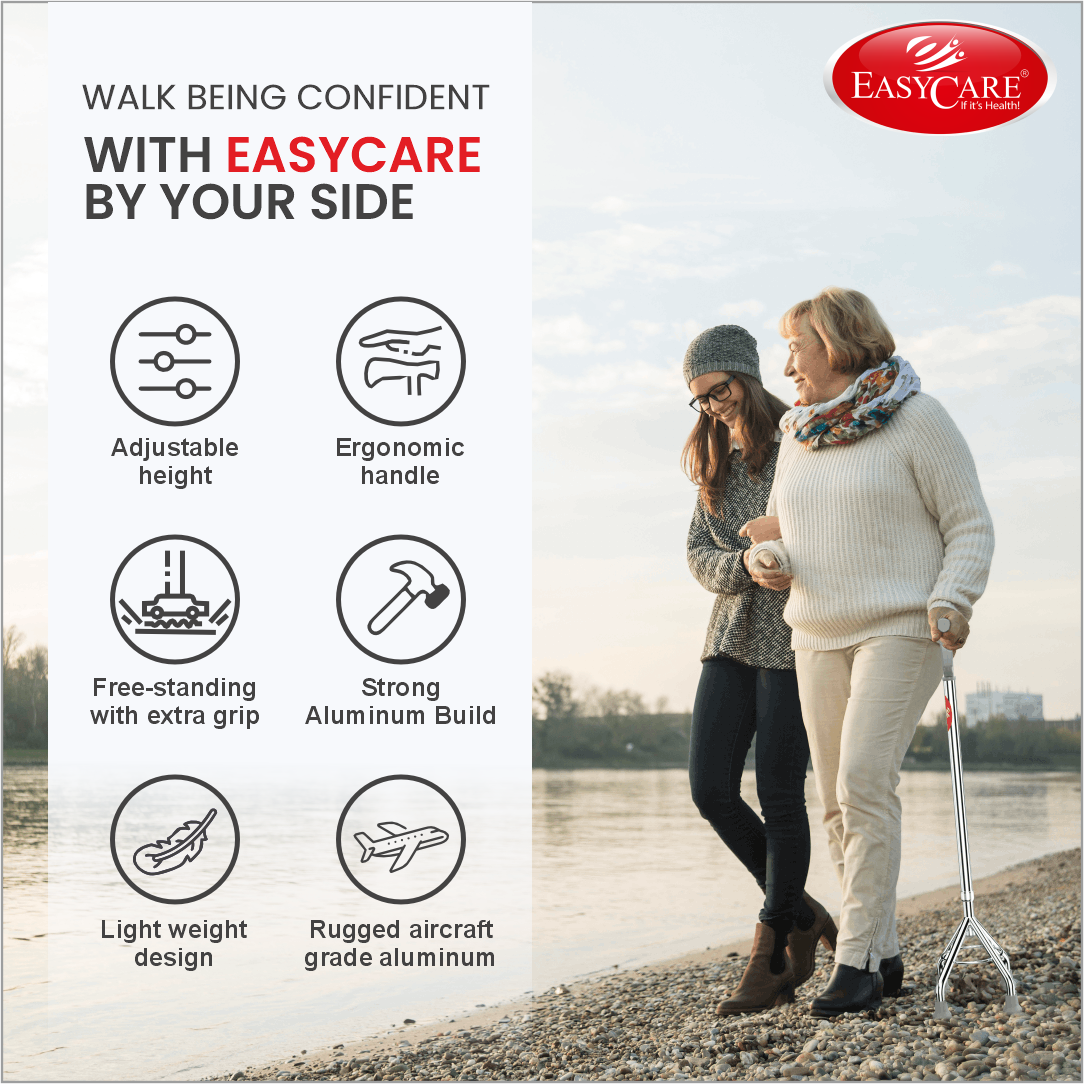 EASYCARE Premium Walking Stick | Lightweight Aluminium with 10 Height Levels Adjustable | Ergonomic Handle, Anti-Slip Base | Support for Old Age Seniors, Men, Women & Patients (High Rise 4 Legs) (EC932VH)