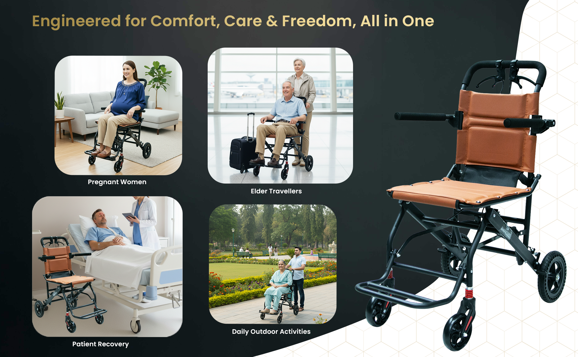 Recommended for anyone who needs a reliable, travel-friendly wheelchair that offers quick folding, strong support, and comfortable all-day mobility.