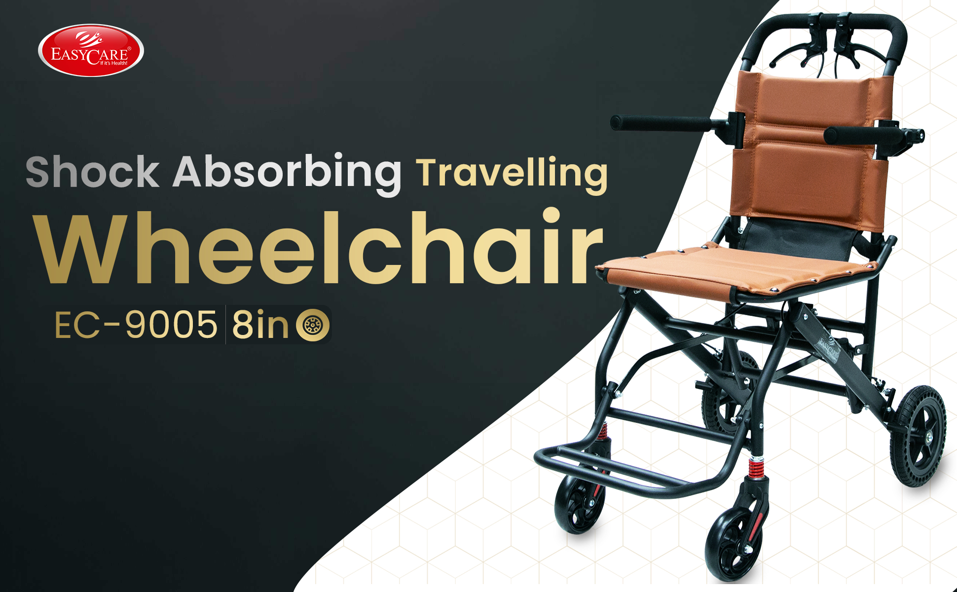 EASYCARE Portable Mild Steel Wheelchair (EC9005) delivers dependable mobility engineered for travel and everyday use. Engineered to fold and unfold in 4 seconds, this wheelchair maximizes portability without compromising stability. The robust mild steel frame supports up to 105 kg while remaining lightweight for transport. Attendant-controlled 270° handles with locking brakes provide secure positioning and minimize caregiver strain. Adjustable rotatable footrests and flip-up leg supports accommodate varying comfort preferences. One-handed folding mechanism, integrated safety belt, rear storage pocket, and convenient carry bag make this wheelchair an ideal solution for active individuals requiring reliable mobility assistance.