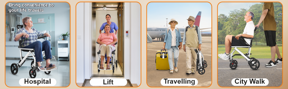 • Folds in Seconds: The foldable wheelchair design makes it easy to collapse and store in car trunks, closets, or tight spaces—ideal for those who need a wheelchair for travel or live in compact homes.