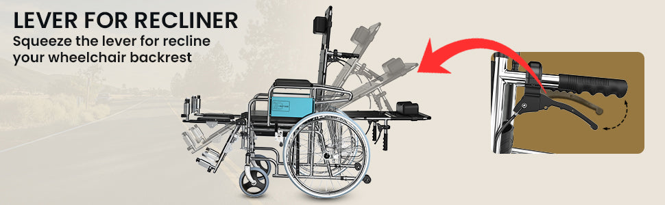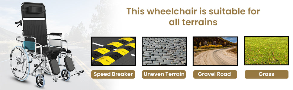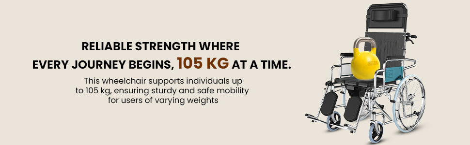 EASYCARE Advanced Steel Wheelchair with United Brake, Commode, Backrest Reclining 90-180 Degree & Anti Tilt Wheel (Capacity upto 100kgs) (EC608GC)