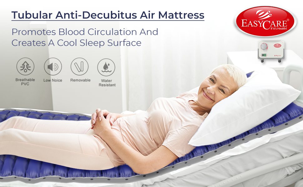 EASYCARE EC6012 Anti Decubitus Air Mattress with Air Pump – Tubular Type for Bed Sores, Pressure Ulcers & Long-Term Bedridden Care