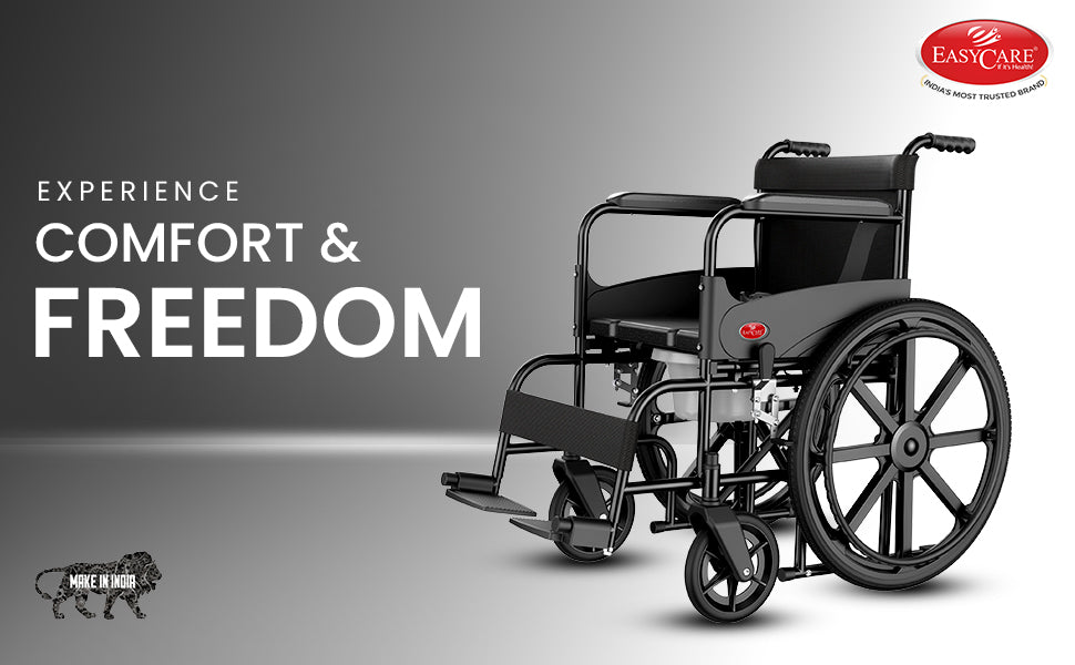 Built from durable materials, the Easycare wheelchair combines portability with strength. The U-cut seat design allows commode use, making it perfect for elderly individuals needing toilet assistance or wheelchairs for bathrooms.