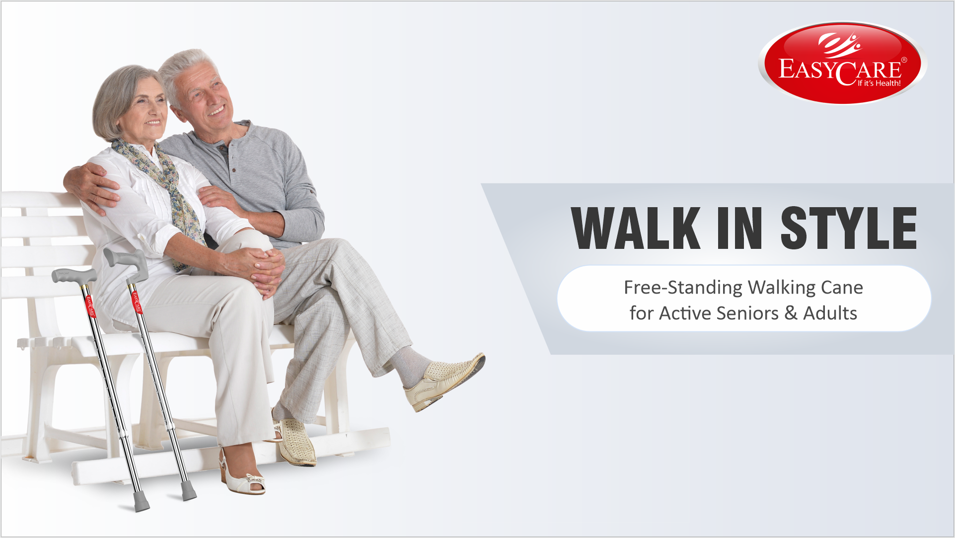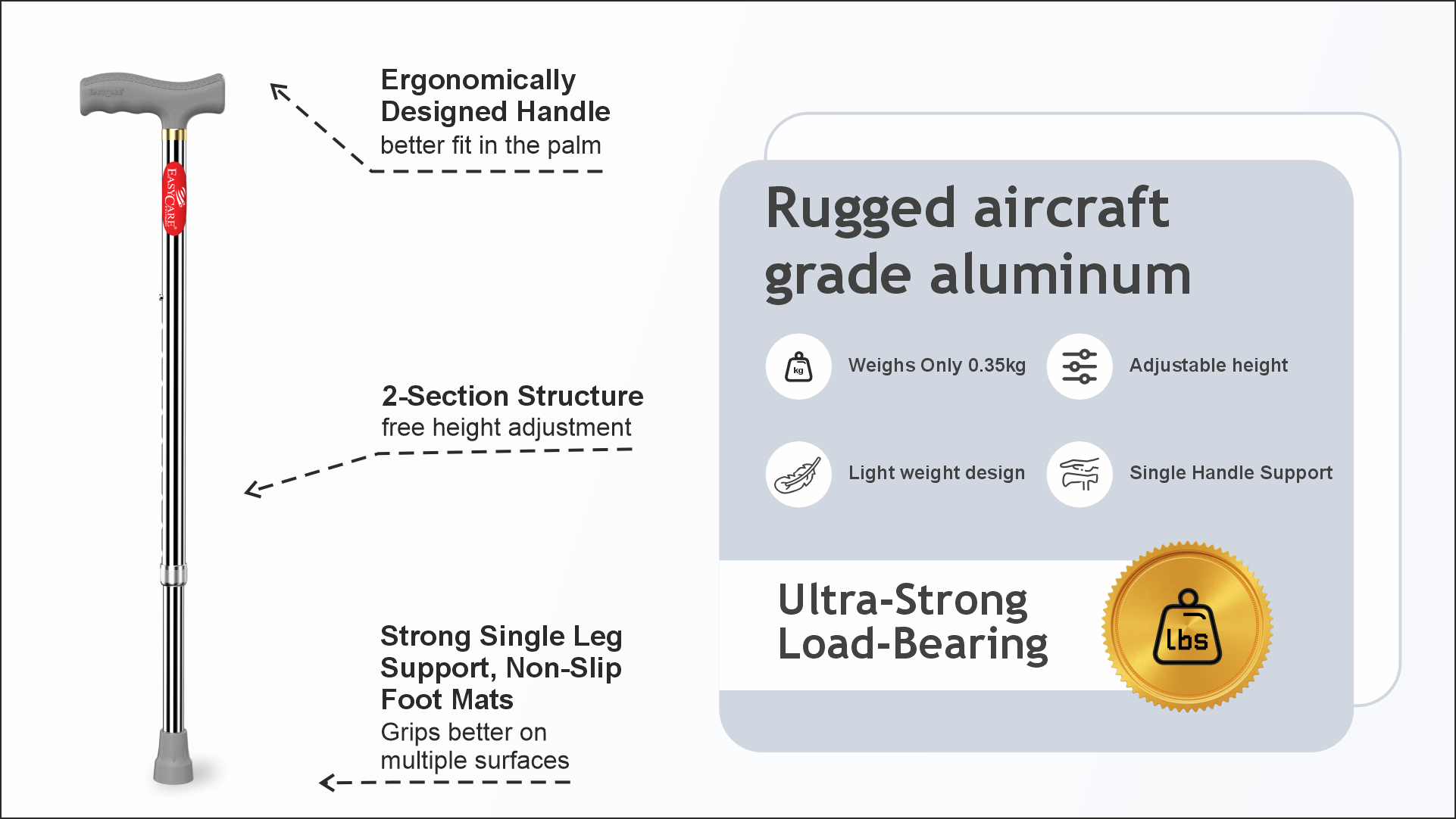 EASYCARE Walking Stick | Lightweight Aluminium with 10 Height Levels Adjustable | Ergonomic Handle, Anti-Slip Base | Support for Old Age Seniors, Men, Women & Patients (Single Leg) EC920