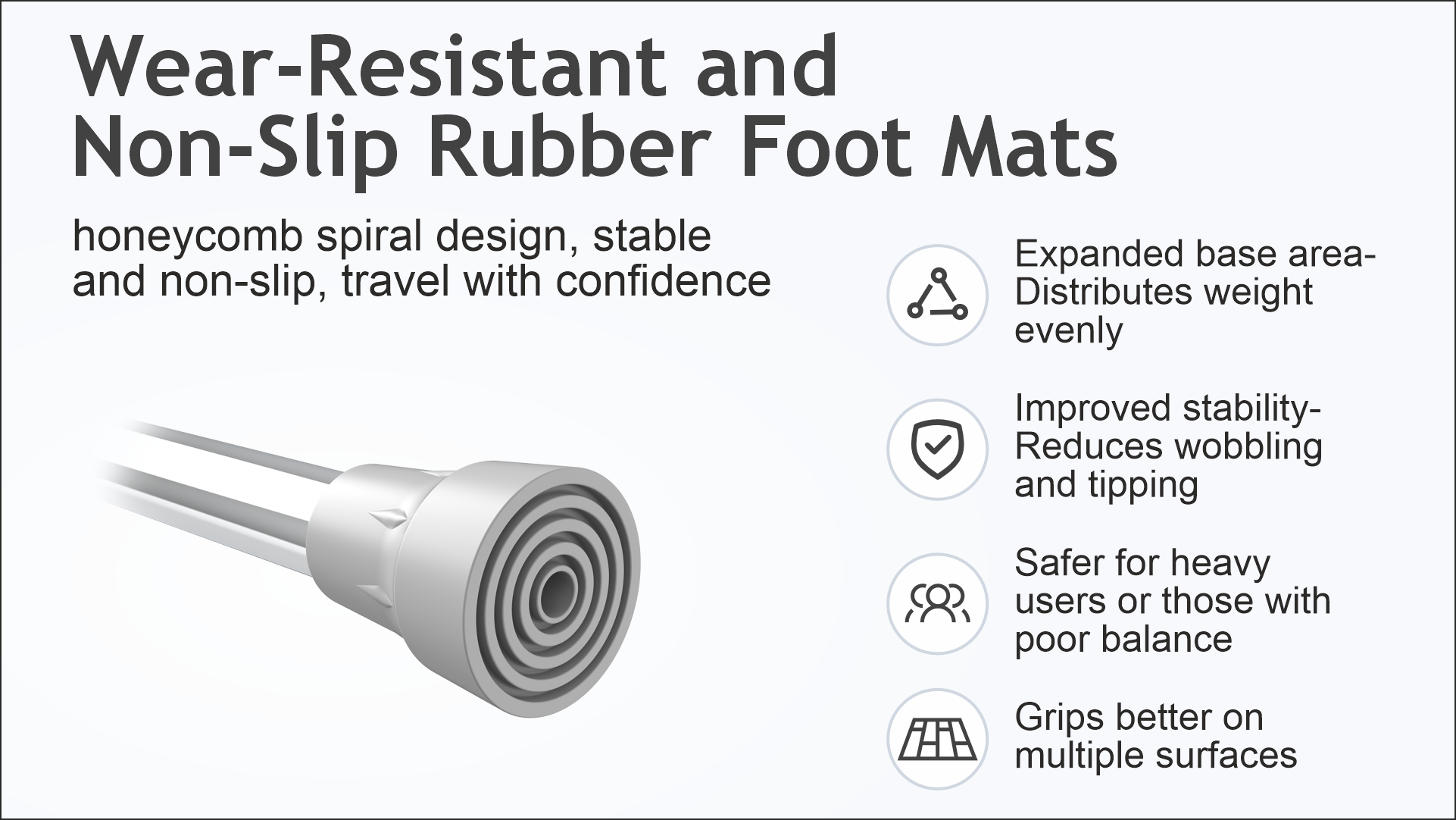 - 🦶 Anti-Slip Rubber Foot Mat: Sturdy base with non-slip rubber tip provides extra stability on smooth and rough surfaces.